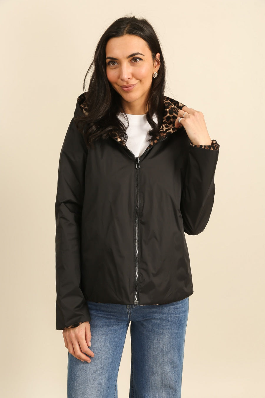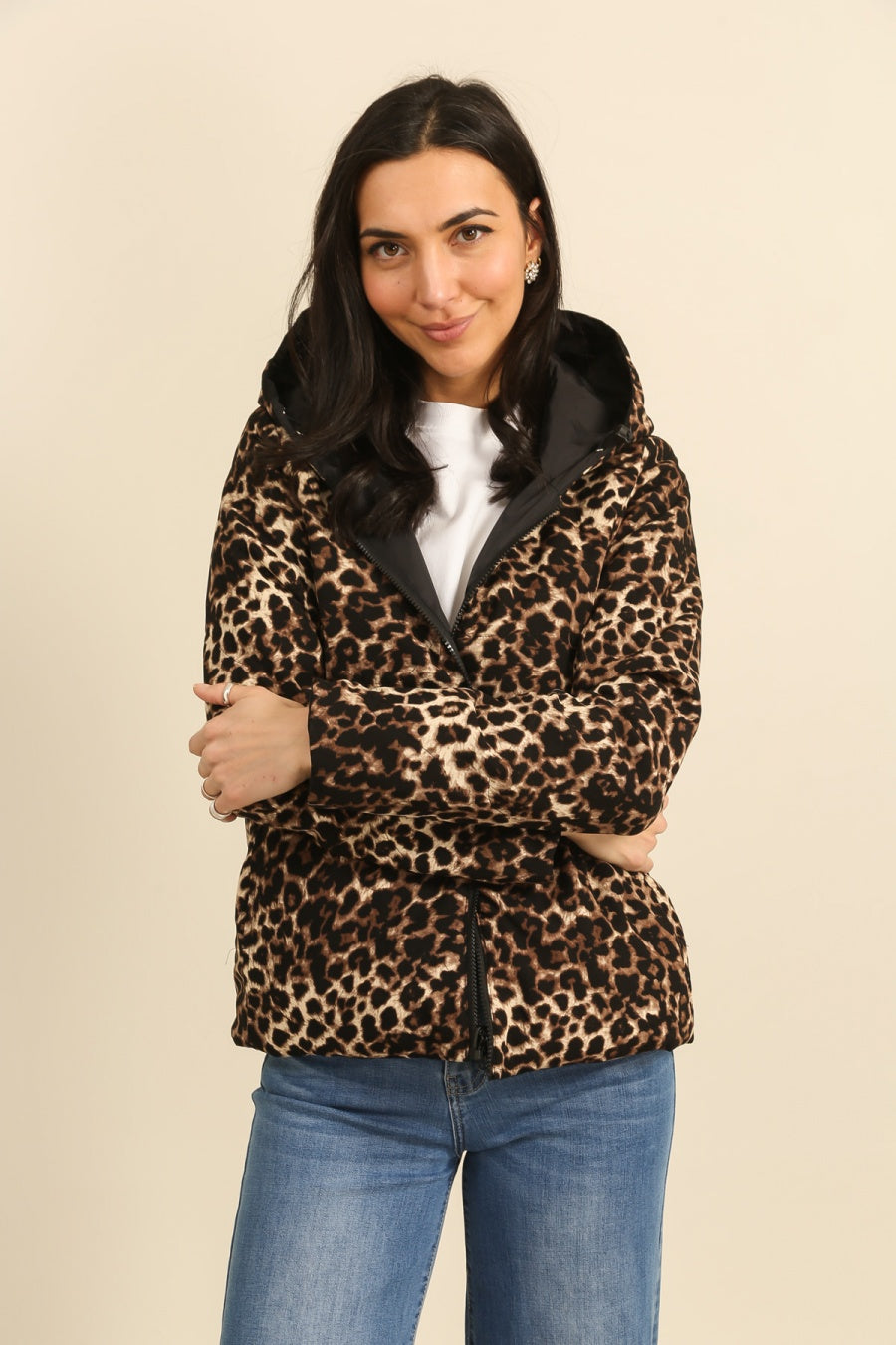 Imperméable réversible court mi-saison en version léopard (couleur/leo choco)